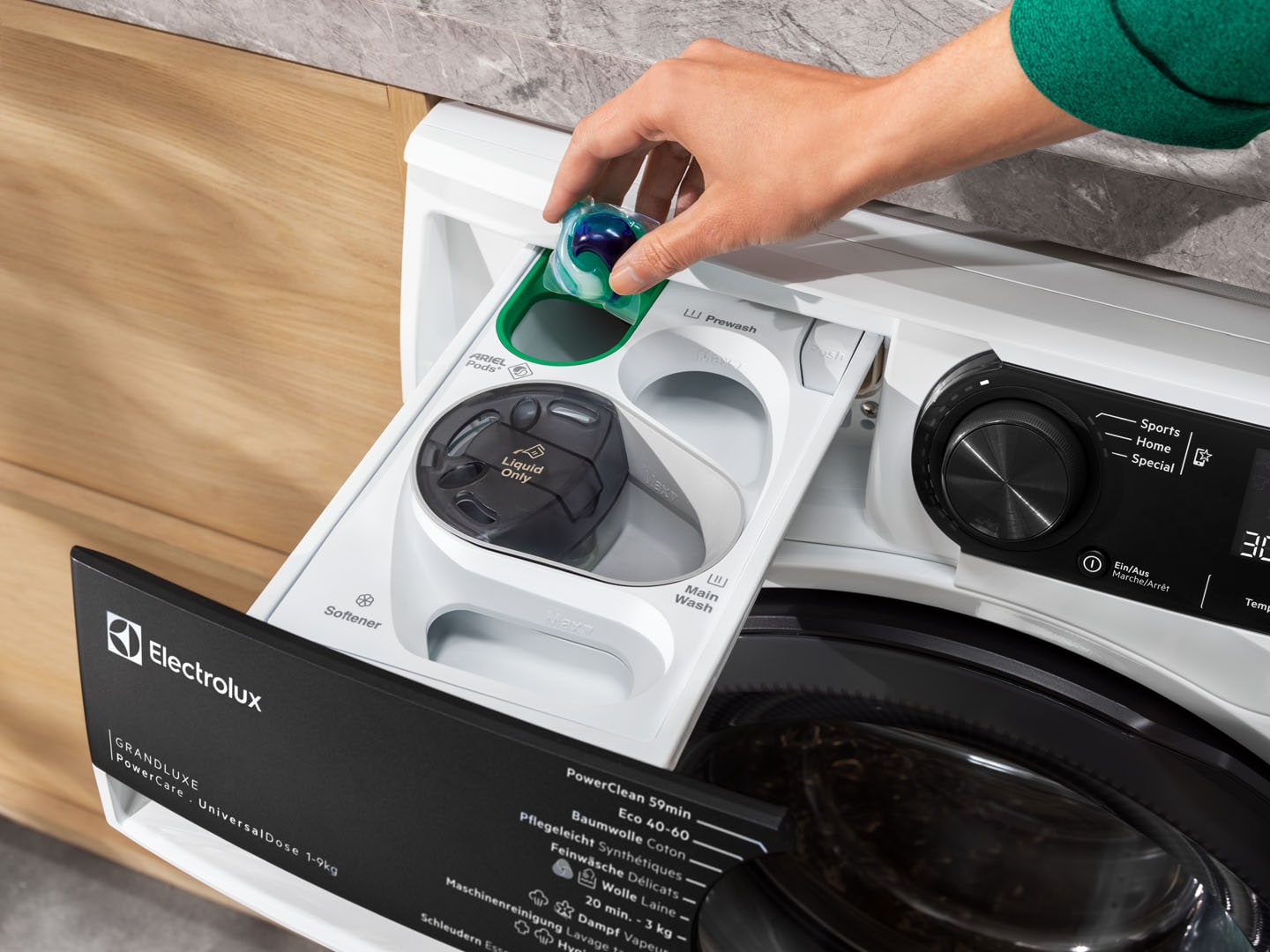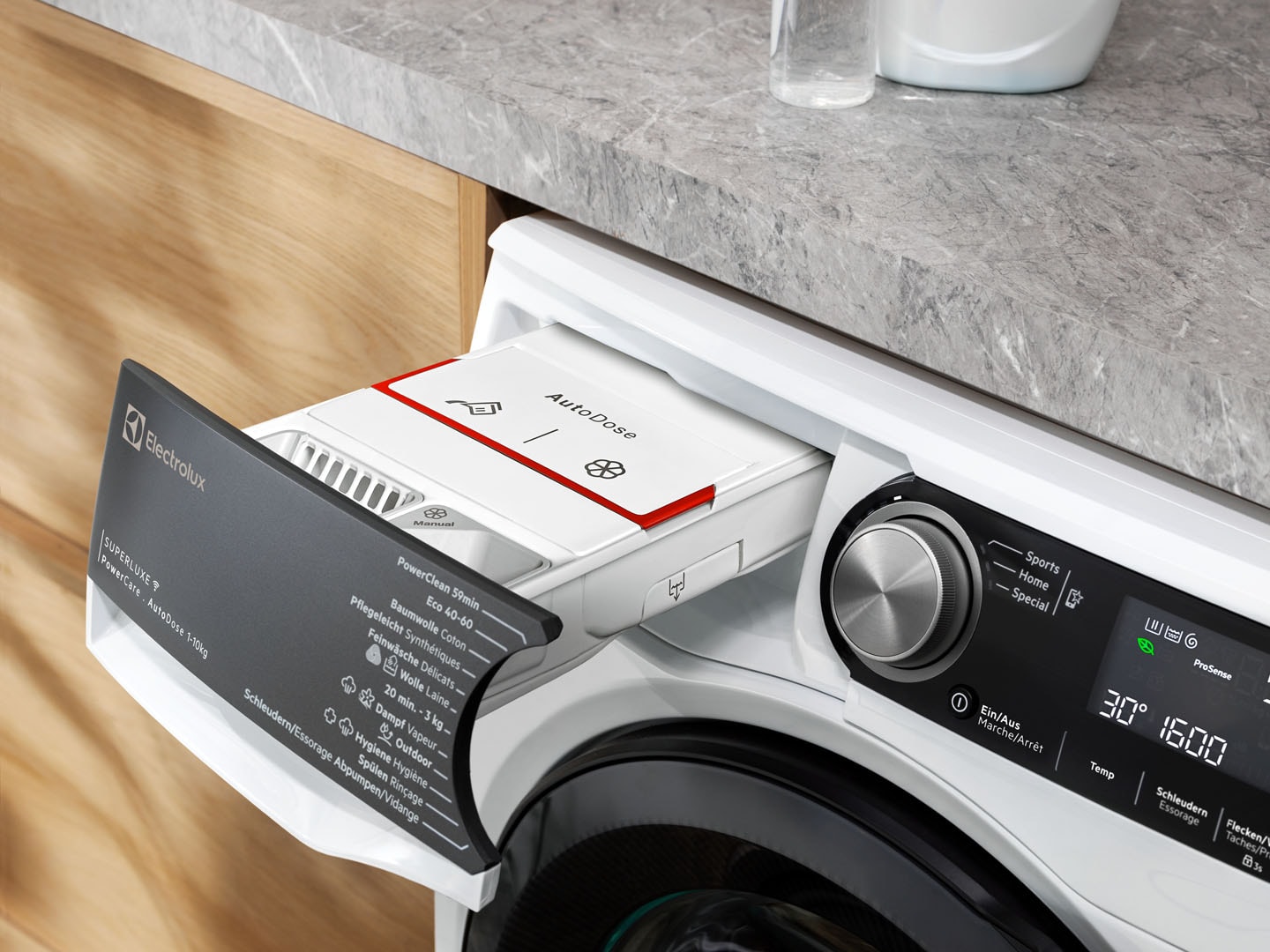 ***** Secondo un metodo di test interno sulla quantità di detersivo, che ha determinato il consumo per un carico di 2 kg con AutoDose rispetto al dosaggio medio a mano.