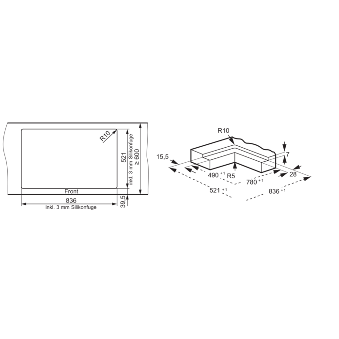 Einbauvarianteflächenbündig oder aufliegend