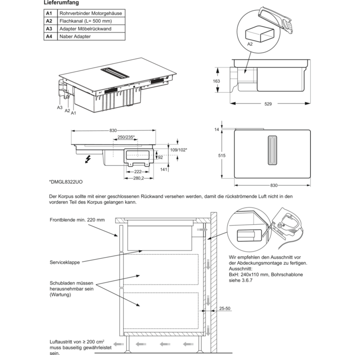 Abluft-Leistung min. Stufe (m³/h)270