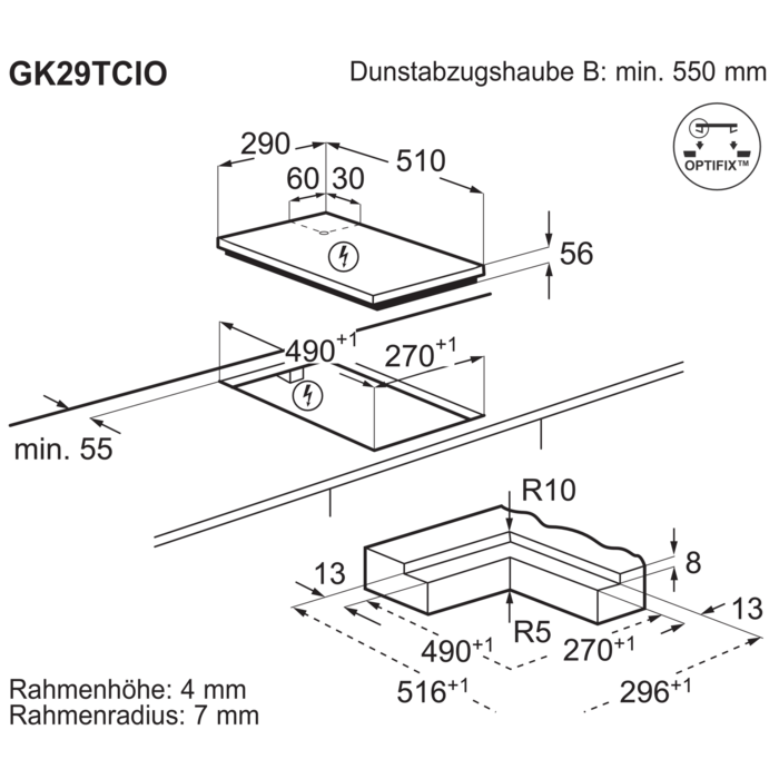 Einbauvarianteflächenbündig oder aufliegend
