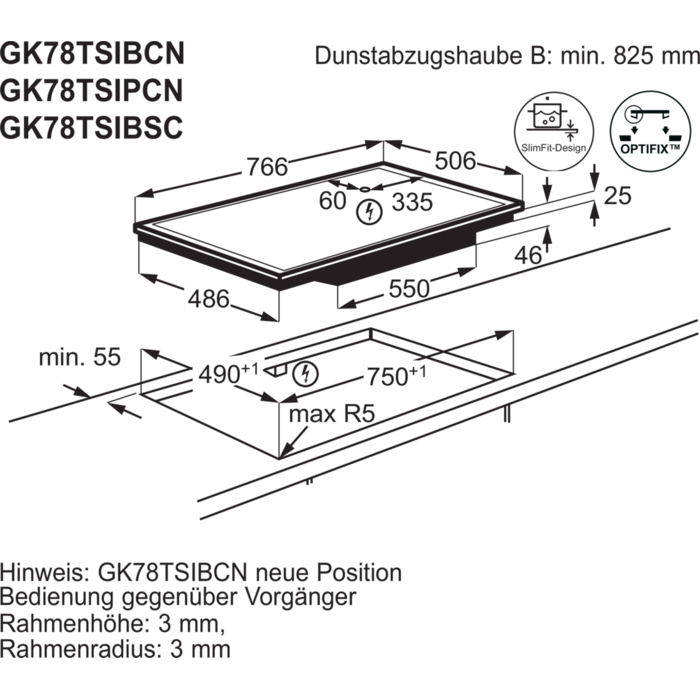 Funktionen3-stufige Restwärmeanzeige, Akustisches Einschalt-Signal, Boost, Kindersicherung, Eco-Modus, Flexible Powermanagement, Heat memory, Hob2Hood, Individuelle Zone, Kindersicherung, Bridge-Funktion links, Kurzzeitmesser, Pause-Taste, SenseBoil, Akustisches Endsignal