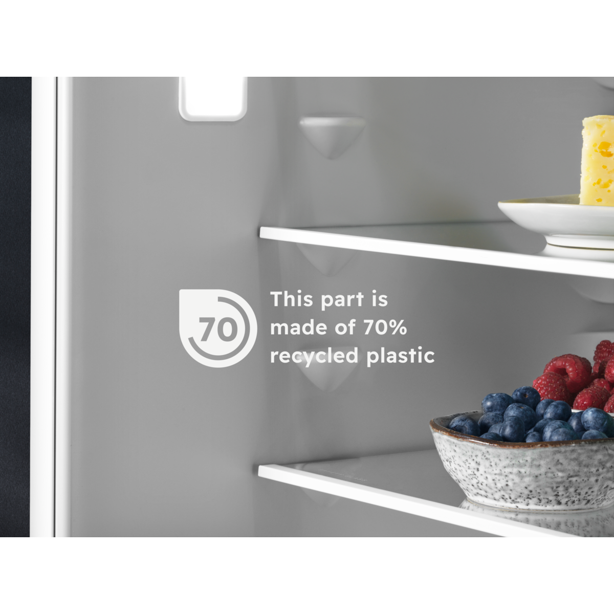 * Das Material der Innenauskleidung besteht zu 70 % aus recyceltem Kunststoff, insgesamt sind das 13 % des gesamten im Kühlschrank verbauten Plastiks.”