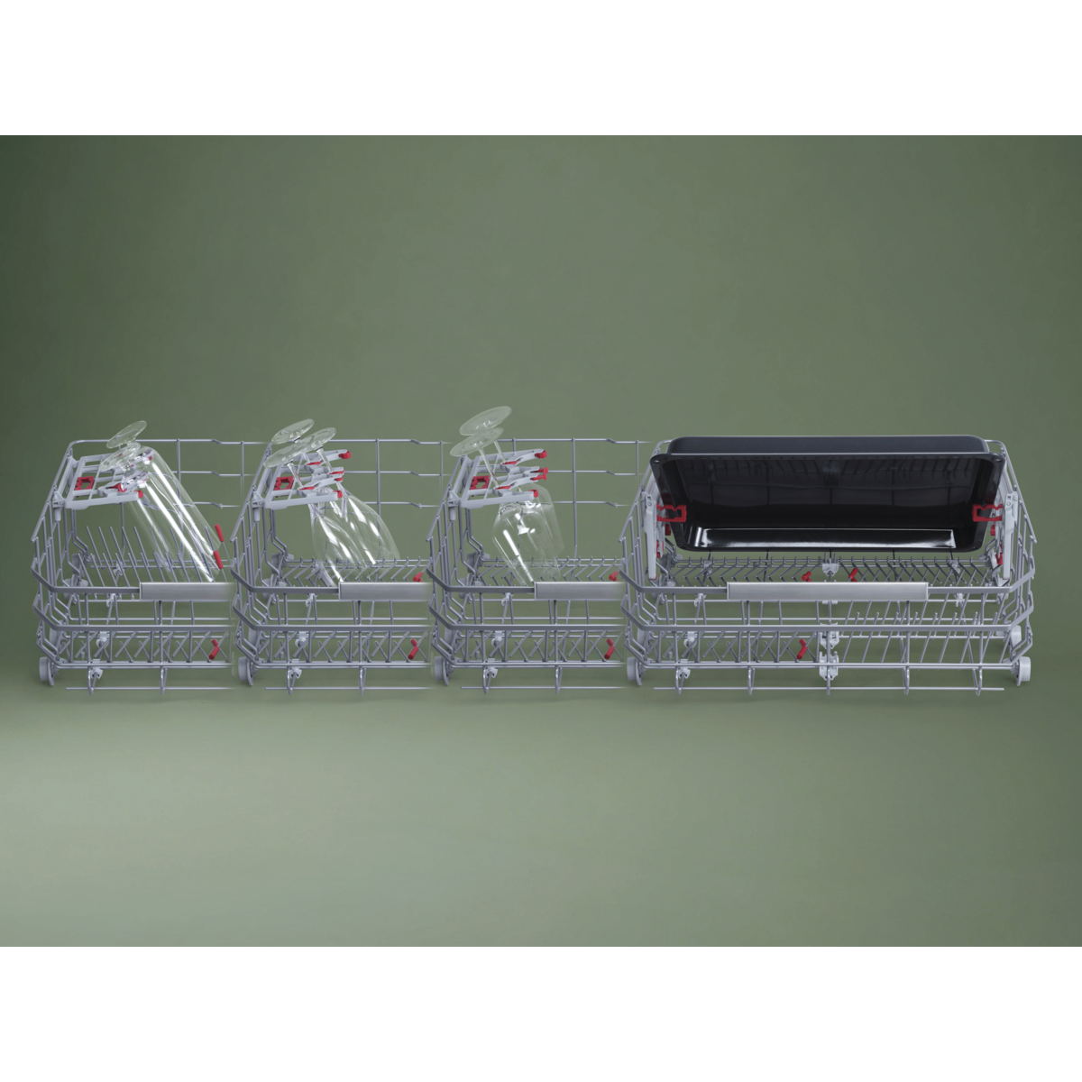 GrandLuxe bietet grosszügigen Stauraum, flexible Körbe, zwei Spülzonen und individuell geformte Halter für Gläser. Starke Reinigung bei niedrigem Verbrauch. Einstellungen und Support finden Sie bequem in der App.