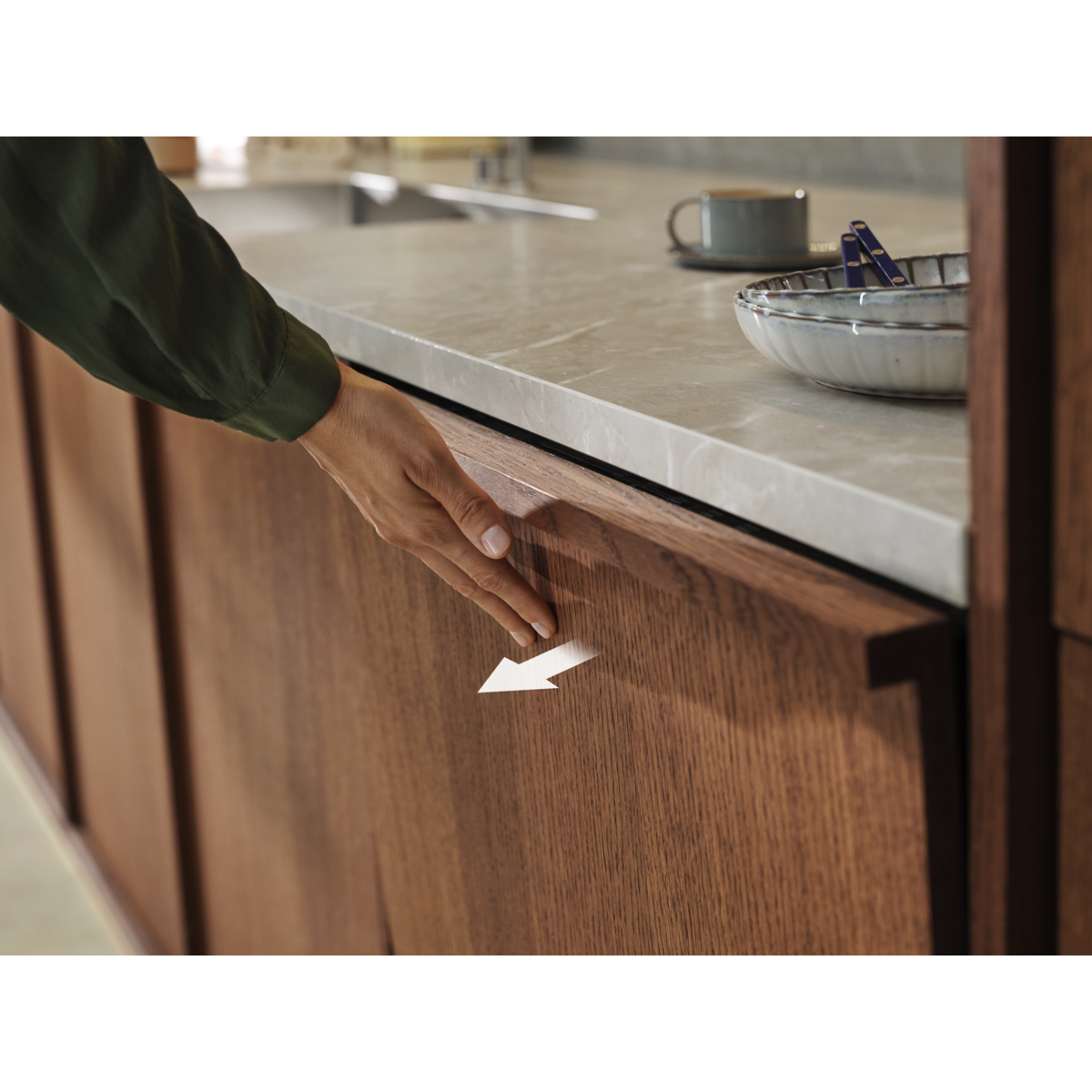 Grifflose Öffnung dank Push2Open-Tür. Nahtlose Integration in Ihr Küchendesign