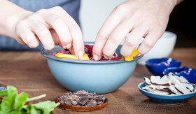 Zur Dekoration frische Früchte in die Bowl geben. Als leckeren Finish dunkle und/oder weisse Schokolade fein darüberraspeln.