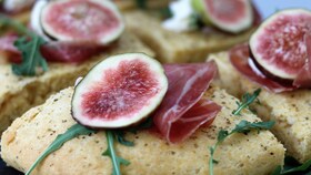 Nach Bedarf vor dem Backen frische Oliven oder Rosmarinzweige in den Teig drücken. Das fertige Focacciabrot kann pur mit etwas Olivenöl genossen oder mit allerlei Zutaten kombiniert werden. Versuchen sie es mal mit Feigen, Rohschinken und etwas Honig.