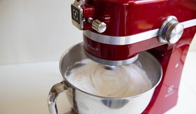Nach einer Weile wird die Mischung emulgieren und eine schöne Buttercreme bilden. Diese nun noch 3-5 Minuten lang auf hoher Stufe schön fluffig schlagen, danach die 2 dl Himbeercoulis hinzufügen und gut weiterrühren.