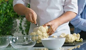 Blumenkohl in eine Pfanne mit Wasser geben und auf dem Induktionskochfeld garen. Nach der Hälfte der Kochzeit Wasser abgiessen, Milch hinzugeben und fertig garen. Masse mit etwas Kochflüssigkeit in den Mixer geben und 3 min pürieren. Mit Salz und Pfeffer abschmecken. Bei Bedarf mit etwas geschmolzener Butter verfeinern.