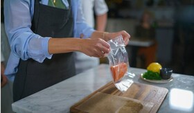 Lachsfilet in den SousVide-Beutel geben und in der Vakuumierschublade vakuumieren.