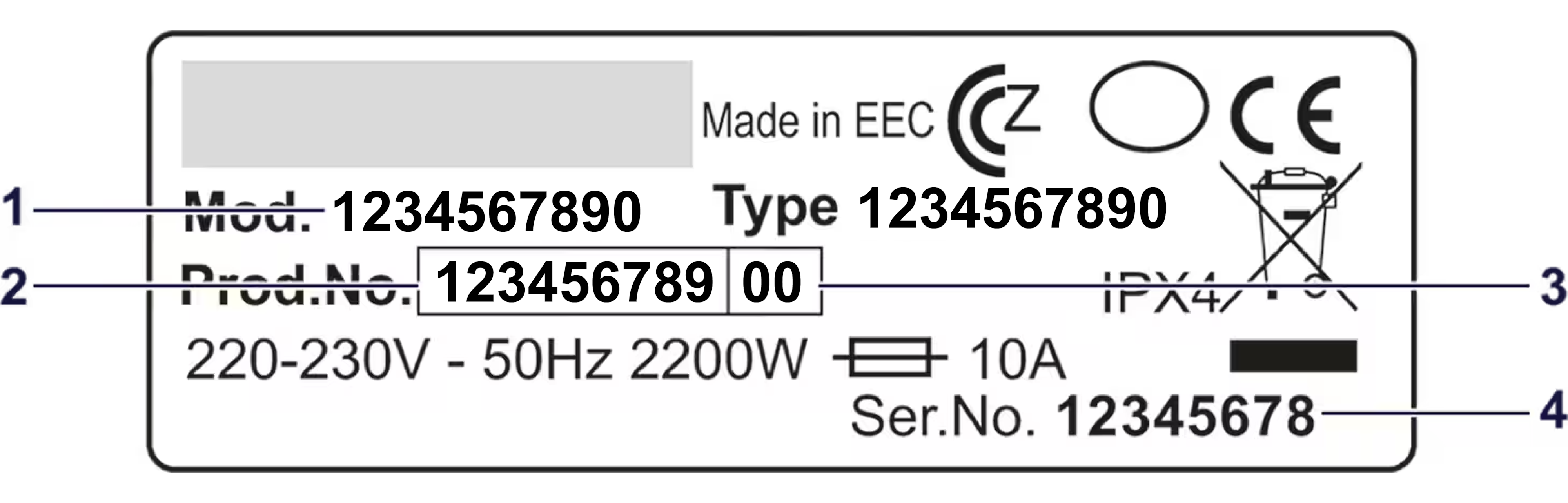 Die Modellbezeichnung und den Produktnummerncode (PNC) finden Sie auf dem Typenschild des Gerätes.