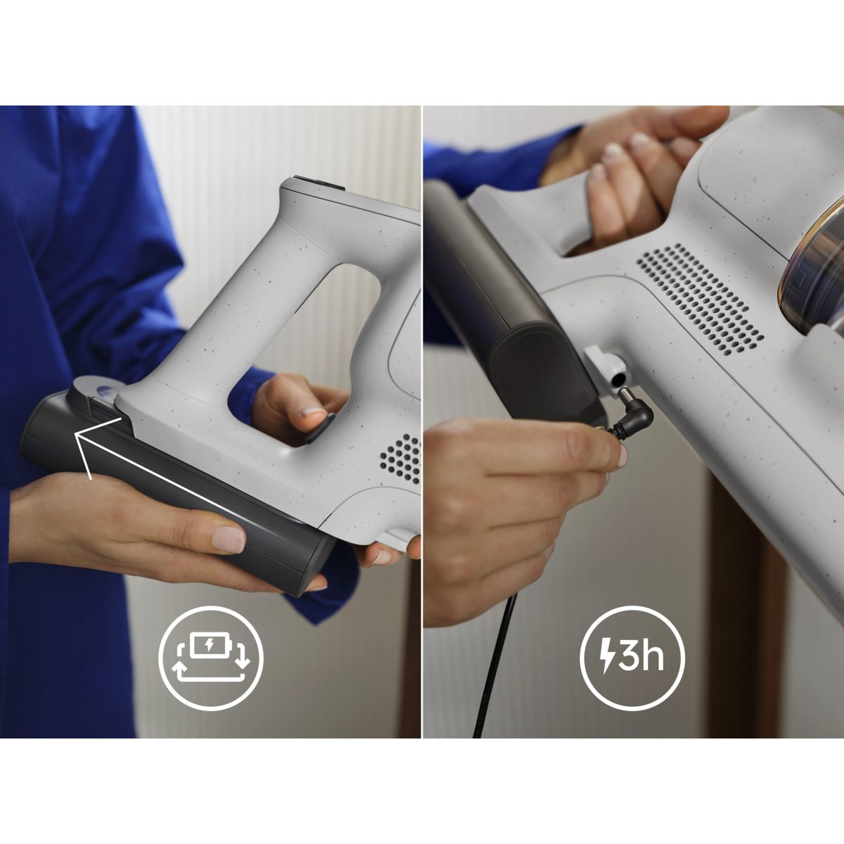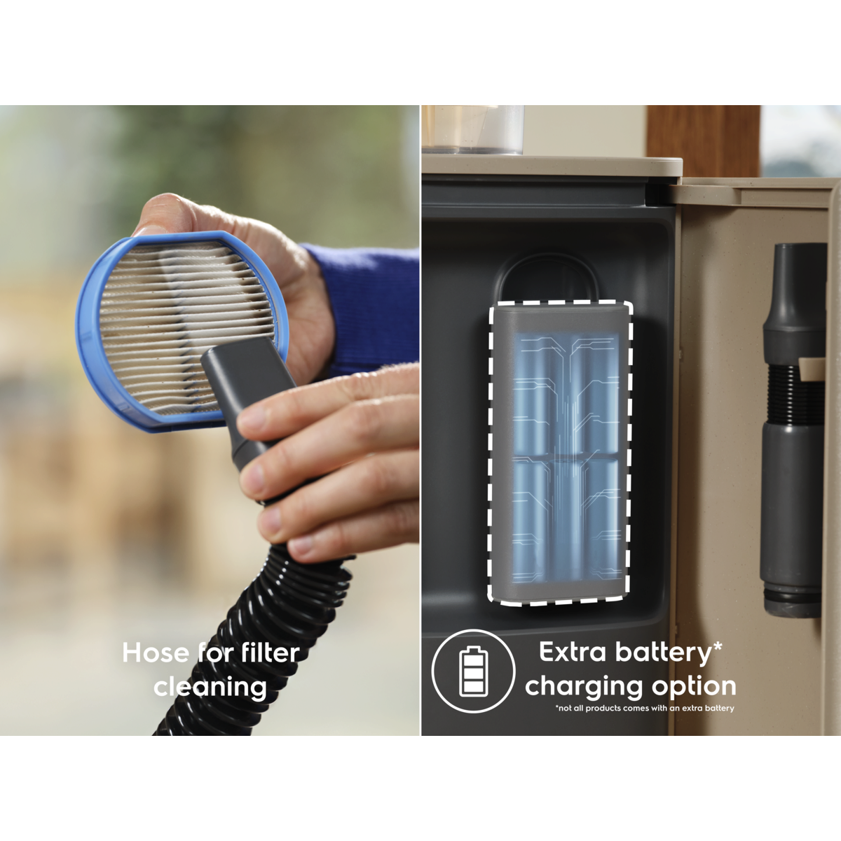 Reinigen Sie ohne Unterbrechung. Mit einem immer aufgeladenen und einsatzbereiten Zusatzakku bewegen Sie sich sorglos durch Ihr Zuhause. Erleben Sie eine stressfreie und unterbrechungsfreie Reinigung, die sich Ihrem Zuhause und Ihrem Tagesablauf anpasst.