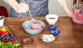 Ajoutez des fruits frais et du granola à votre smoothie bowl. Réalisez des copeaux de chocolat noir et/ou blanc et garnissez-en votre smoothie.