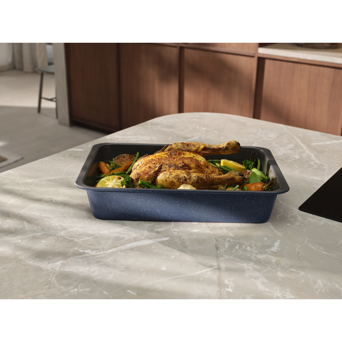 Il set da forno BakeWell Easy2Clean è progettato per essere pratico e versatile, senza rinunciare a colore e stile. Grazie al rivestimento antiaderente in ceramica senza PFAS come il PTFE, rende la cottura e la pulizia ancora più semplici.