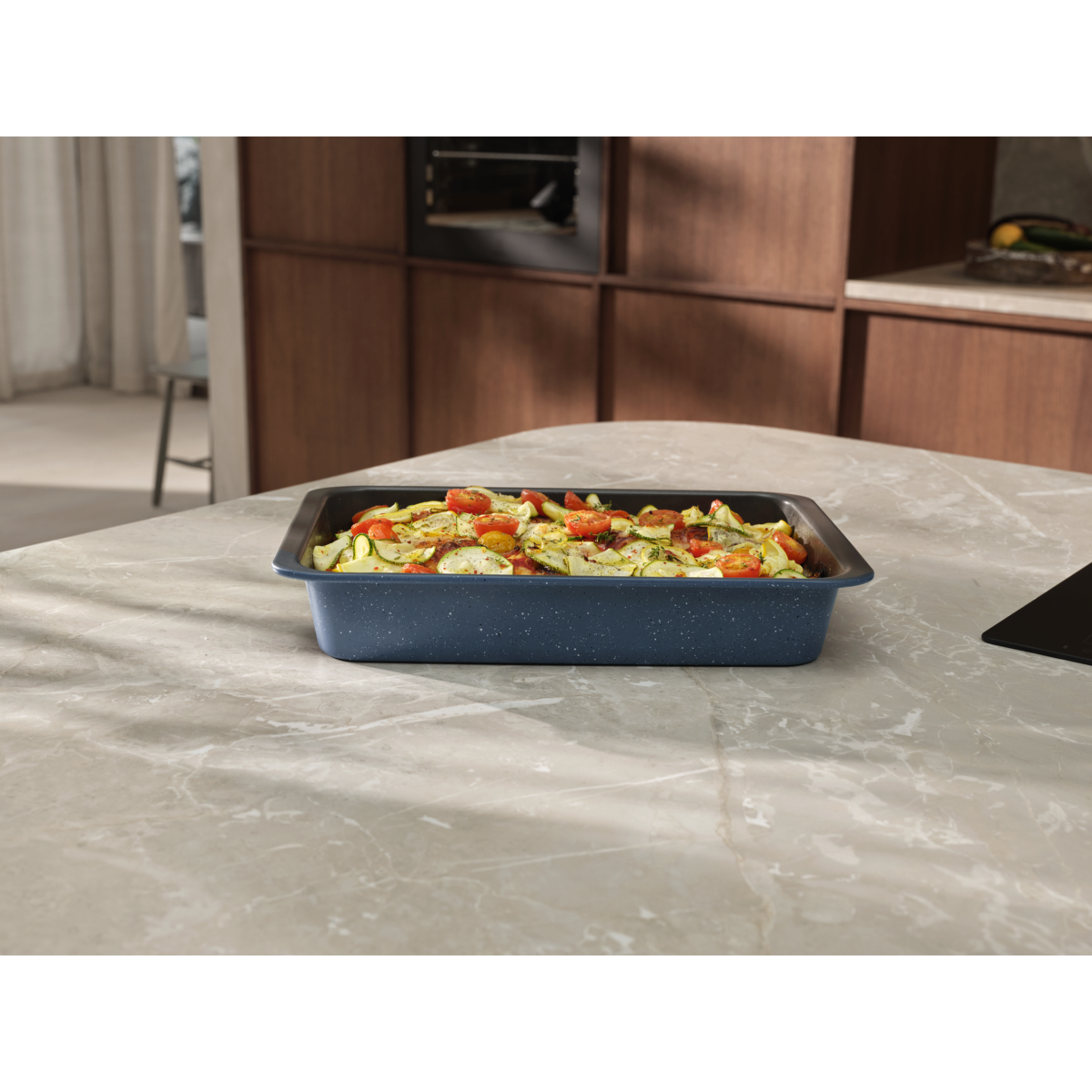 Il set da forno BakeWell Easy2Clean è progettato per essere pratico e versatile, senza rinunciare a colore e stile. Grazie al rivestimento antiaderente in ceramica senza PFAS come il PTFE, rende la cottura e la pulizia ancora più semplici.