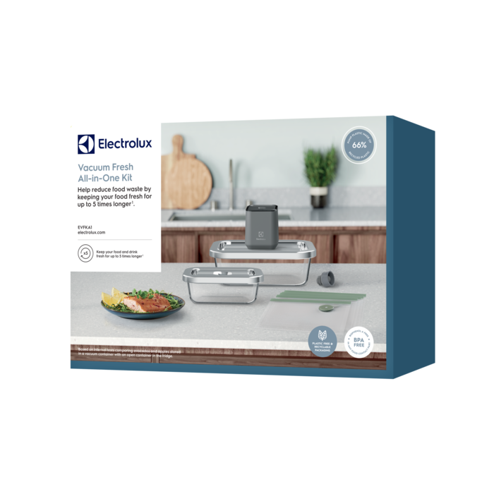 ¹In base a test interni confrontando mele, avocado e salmone conservati in un contenitore sottovuoto con un contenitore aperto in frigorifero.