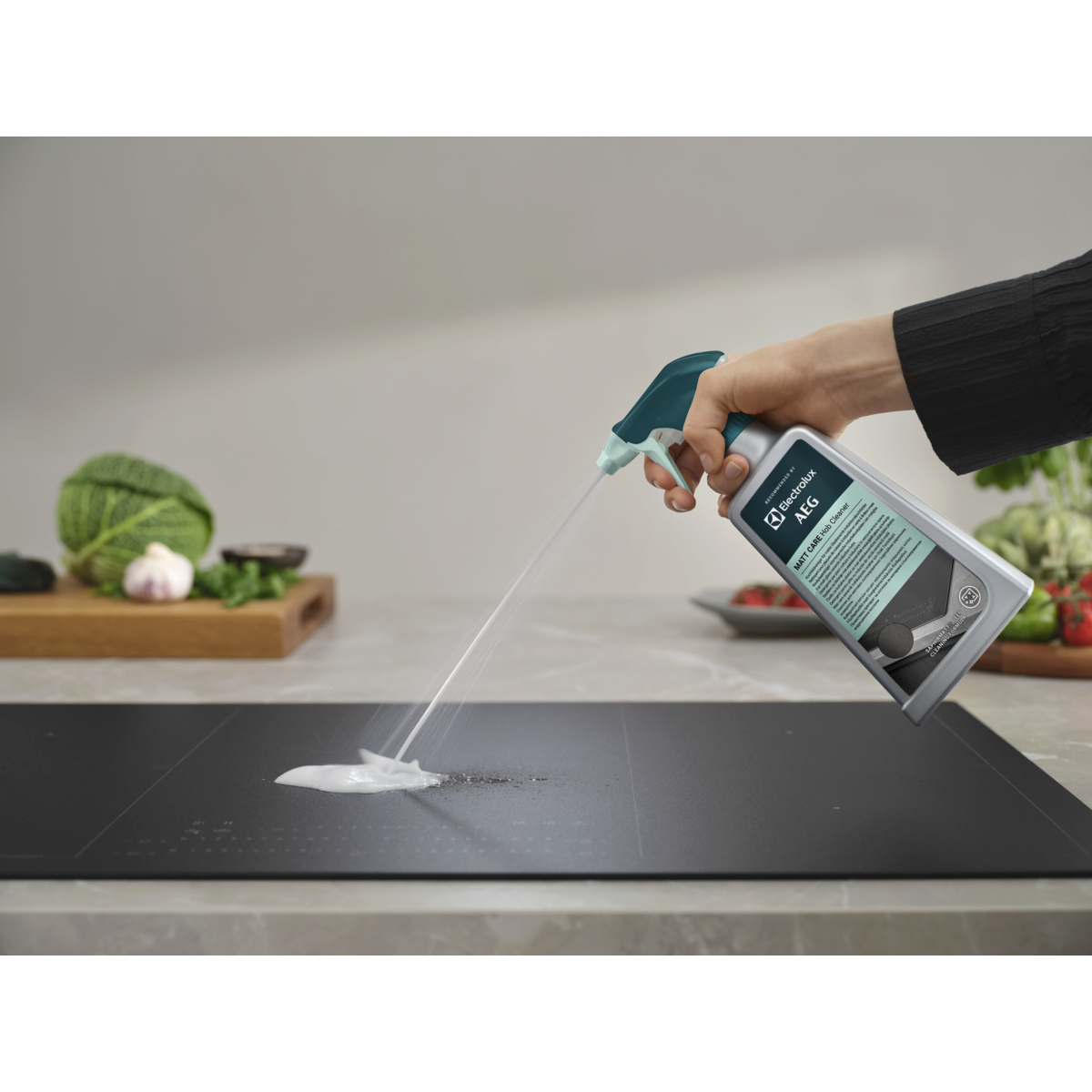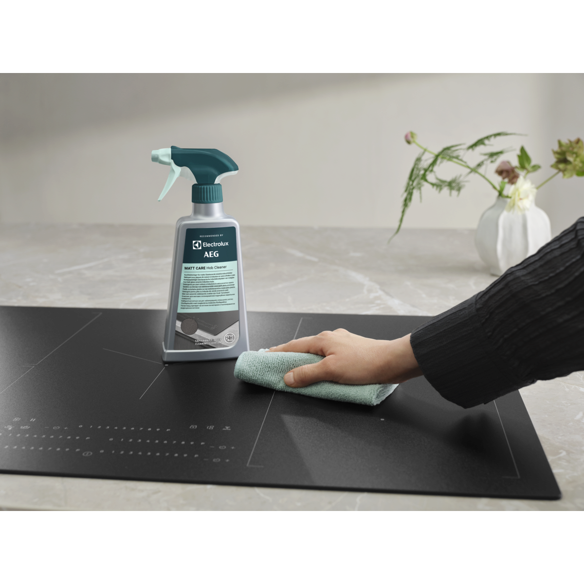 Matt Care Hob Cleaner è progettato appositamente per i piani cottura a induzione in vetroceramica opaca, tra cui SaphirMatt® e SaphirMatt® SE*. Rimuove il grasso ostinato e i residui di cibo bruciato per mantenere il piano cottura in condizioni perfette.