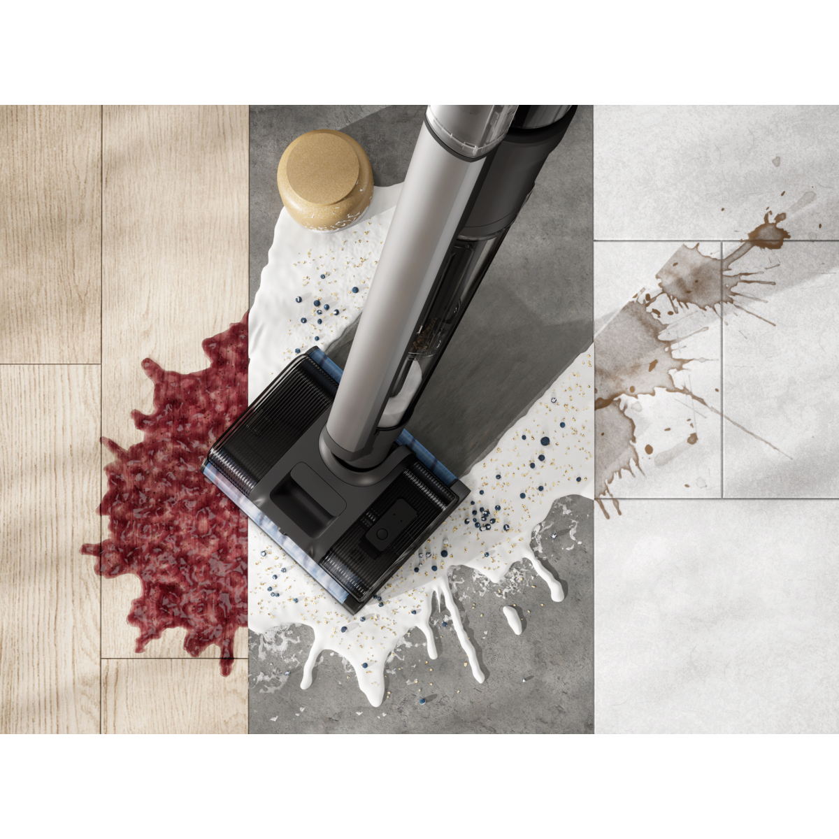 *Sulla base di test interni su macchie di ketchup (lasciate asciugare per 2 ore) e su quelle di caffè (lasciate asciugare per 24 ore) mediante passaggi in avanti e all'indietro sulle piastrelle.